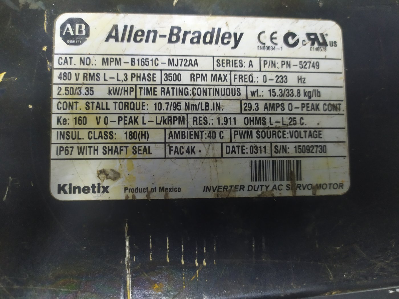 ALLEN-BRADLEY MPM-B1651C-MJ72AA Ürünümüz için sizlere teklif alabilirsiniz tek yapmanız gereken formu doldurmak.